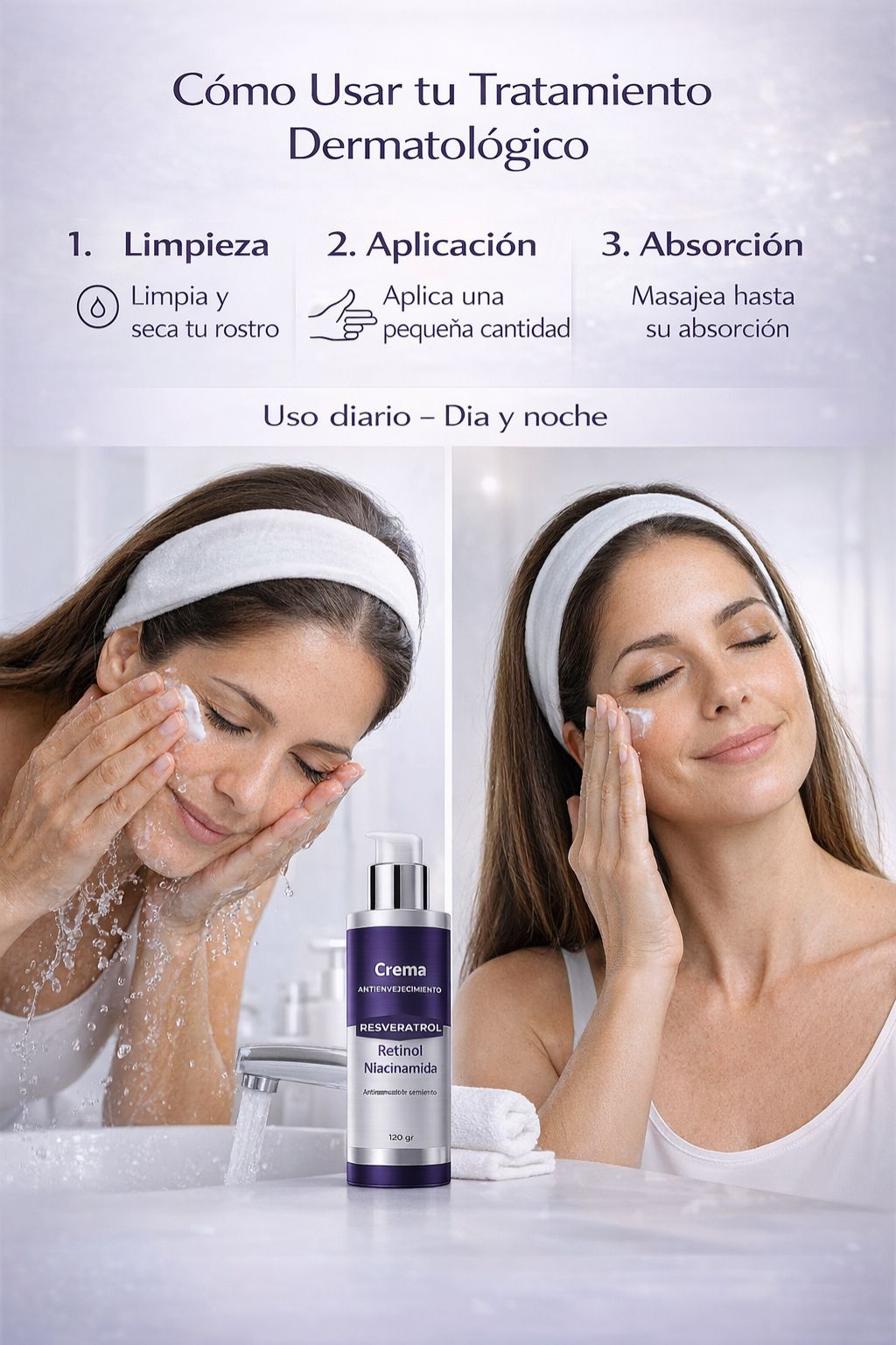 Crema Antiedad Dermatológica (Resveratrol - Retinol - Nicinamida)